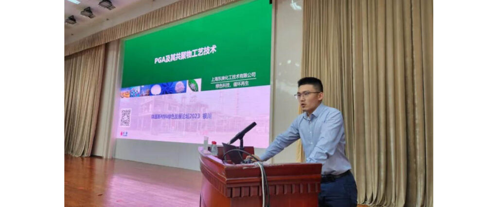 The 14th Coal-based New Materials Green Development Forum was held at Ningdong Base from 19th July to 20th July 2023, the personnels from domestic and foreign coal chemical industry, new chemical materials industry, fine chemicals industry, representatives of research institutes, investment & financing institutions, news media and others, are invited to discuss the industrial policies and market trends of coal-based new materials and the development of related emerging technologies under the dual-carbon background. Liang Zhen, the person in charge of this business of DODGEN Company, carried out a speech in the forum around the theme of “PGA and its copolymer process technology” and launched a systematic introduction on the progress of the pilot test.